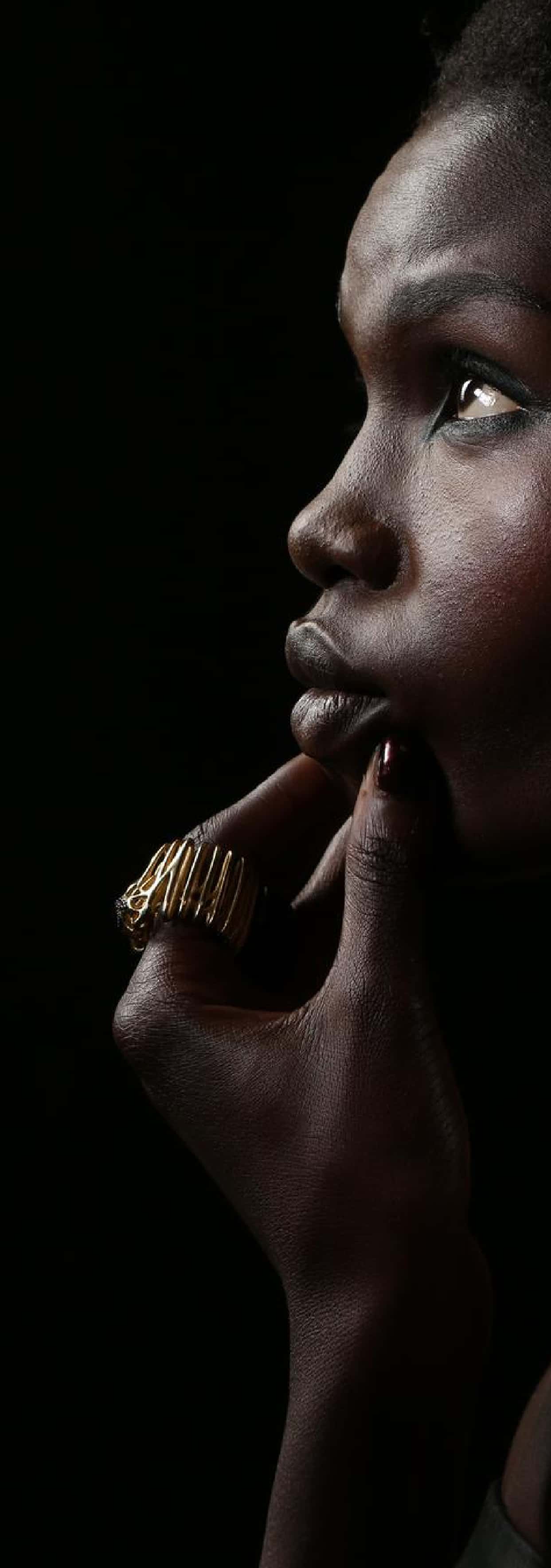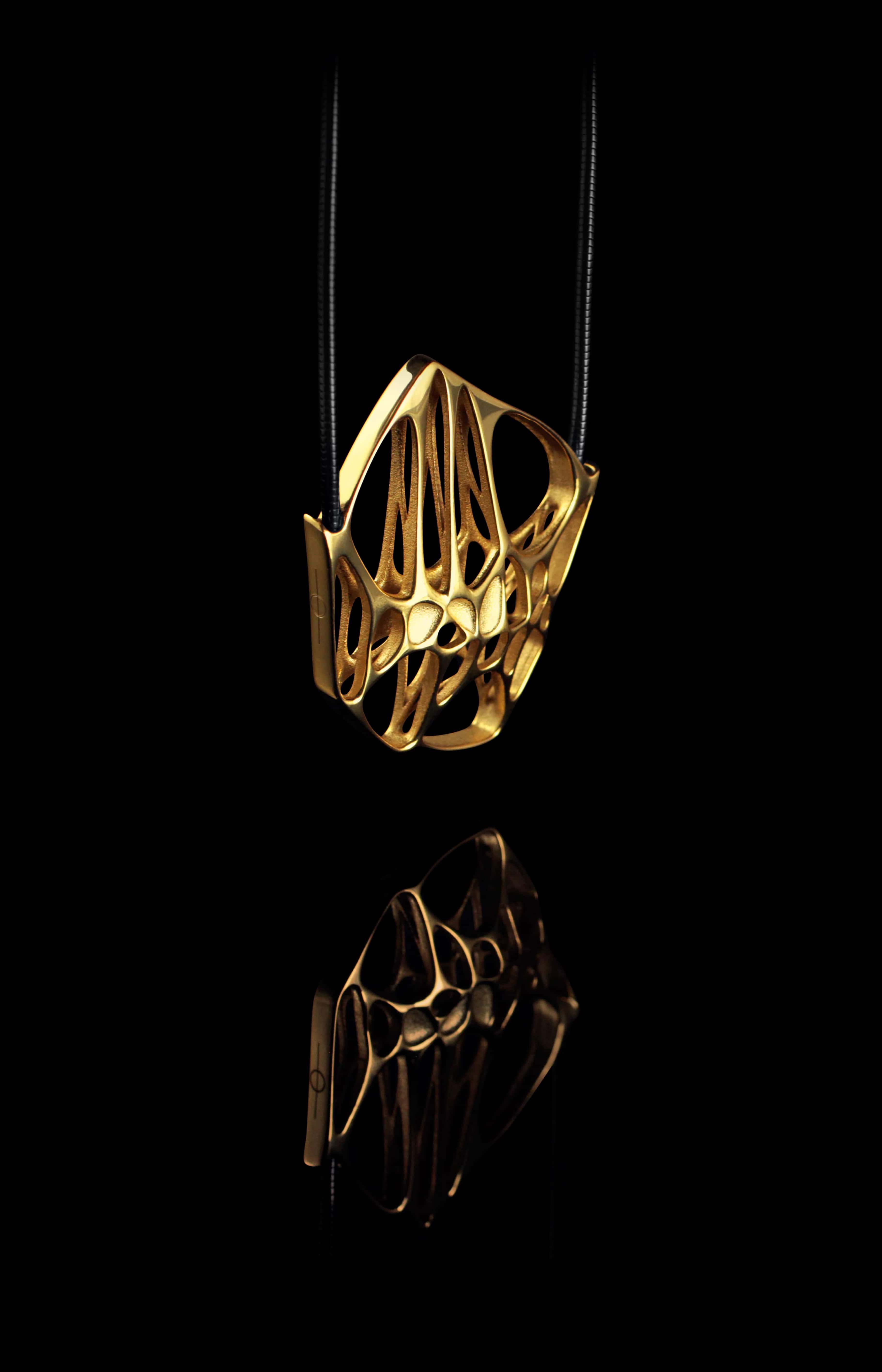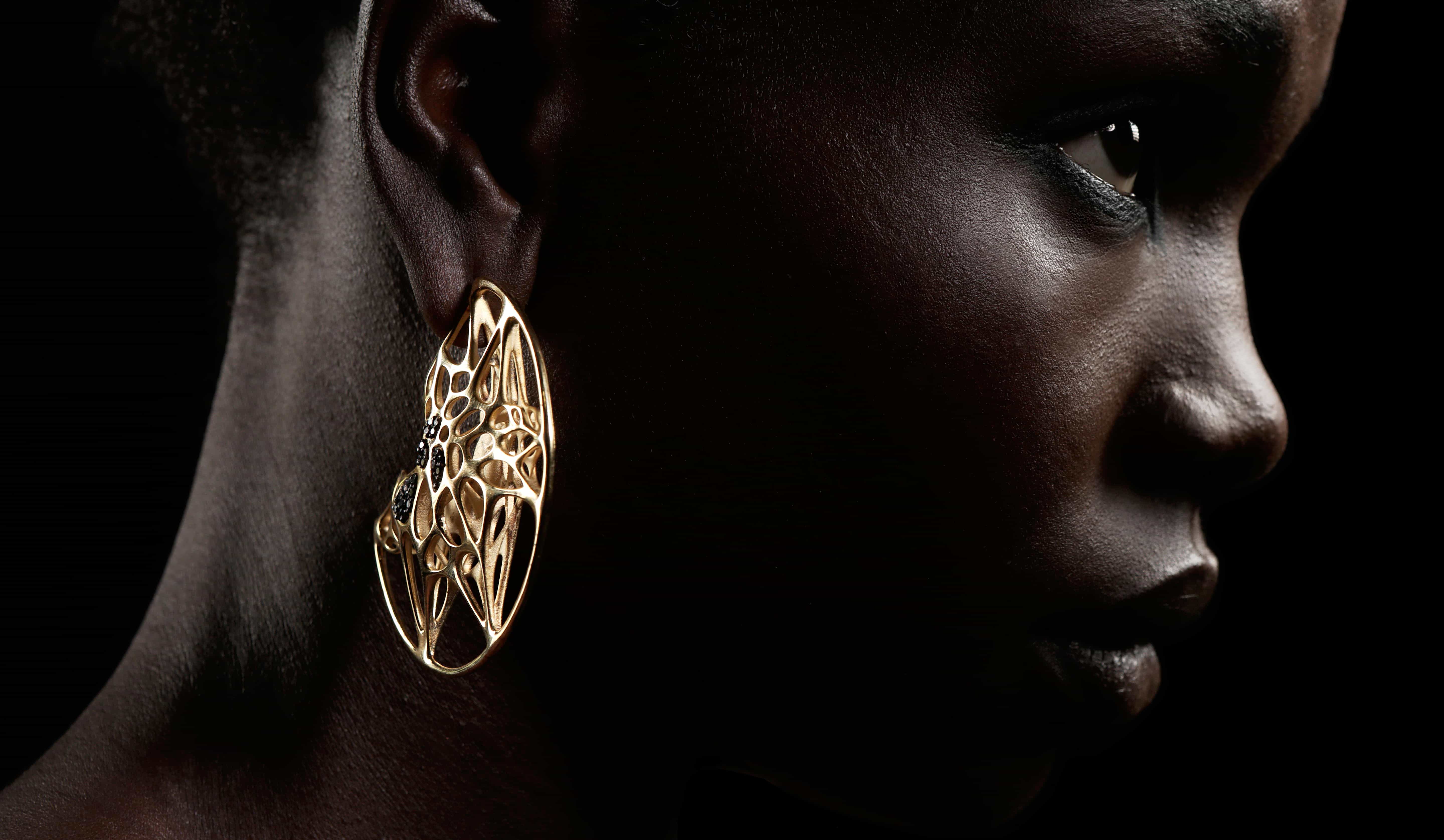 The pieces are plated in 18k yellow and rose gold, black ruthenium and
